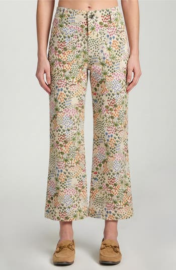 A cool print dials up the everyday appeal of these ankle-grazing wide-leg jeans cut from low-stretch denim.