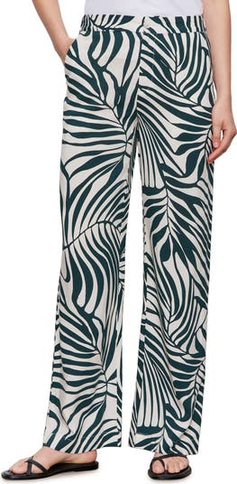 A bold print enchants on polished high-waist pants punctuated with wide legs.
