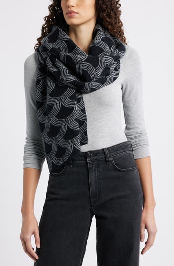 Wrap yourself up in the luxe feel of this cozy scarf knit from wool and cashmere yarns and highlighted by an eye-catching print.