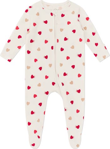 MORI Print Zip One-Piece Footie Pajamas, Alternate, color, Hearts And Cream
