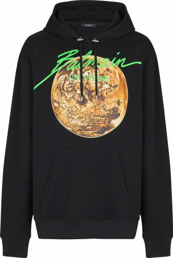 - Printed Balmain Universe logo and planet hoodie