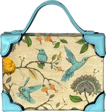 A work of art with a polished, structured silhouette. This handcrafted briefcase bag is wrapped in a beautiful fabric story and finished with sleek corner detailing and a top handle for an effortlessly elevated look. Carry it as a statement bag from cocktail hour to daily celebrations.