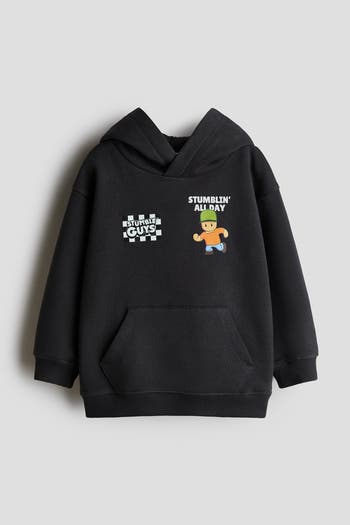 Loose fit hoodie in printed sweatshirt fabric with a soft brushed inside. Lined hood with a wrapover front, dropped shoulders, long sleeves and ribbing at the cuffs and hem.