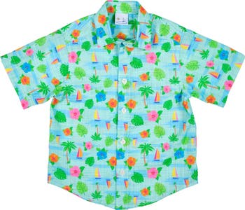Relaxed and resort-ready, this camp shirt is crafted from tropical print linen-look woven in soft, breathable 100% cotton—perfect for warm-weather days away. Short sleeves and side vents keep it cool and comfortable, while a classic button front adds an easy, polished finish.\nIdeal for pairing with shorts or lightweight pants, it’s a go-to style for vacation outings, seaside dinners, and sunny adventures.