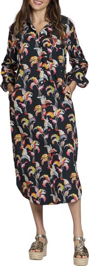 A bold print stands out on a long-sleeve cotton shirtdress that's popped with handy pockets and ready to be on rotation in your daily wardrobe.