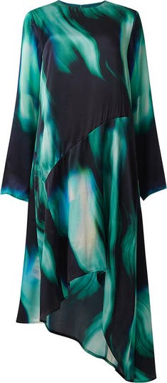 Printed silk and smart design come together in this flowy paneled dress perfect for cooler days. With a round neckline, long sleeves, and a relaxed fit, it’s comfortable and stylish. A hidden back zip adds a clean finish.