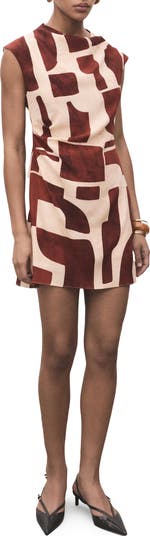A wearable work of art, this pleated cap sleeve dress features a striking abstract print.