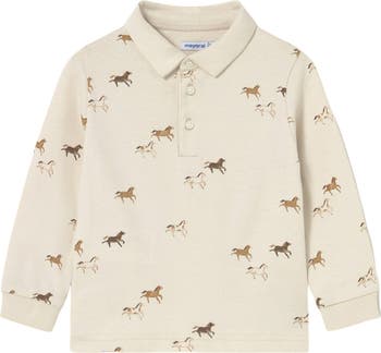 Printed Polo Shirt. Classic polo shirt collar. Button fastenings down the front. Made from soft elasticated cotton fabric. Patterned design. Smart, playful, and oh-so-comfy — the Printed Polo Shirt is a perfect blend of casual style and everyday practicality. Designed with little ones in mind, this soft cotton polo brings a touch of classic charm to your kids wardrobe while keeping them comfortable throughout the day.