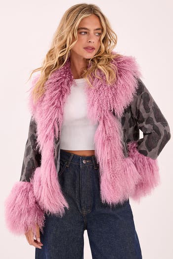 Make a bold fashion statement with this eye-catching shearling-trimmed suede jacket from NastyGal. The striking contrast between the leopard print suede and plush shearling creates a look that commands attention whilst keeping you cosy.