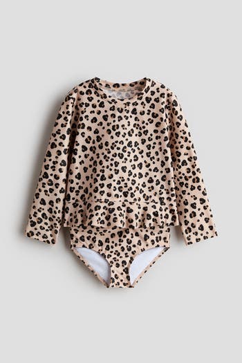 Swim set with a top and matching briefs, both with a printed design. Top in UV-protective fabric with a round neckline, long sleeves, and a peplum. UPF 50. Fully lined briefs.