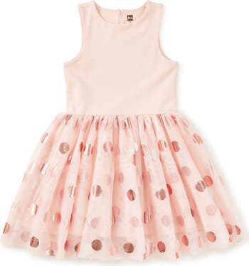 Made for twirls, celebrations, and extra-special moments, this ballet-inspired dress brings a little shine to every step. A smooth, fitted bodice pairs with a full, floaty tulle skirt designed to move beautifully with spins and skips. Shimmering flamenco-dot accents add festive sparkle, nodding to classic dance traditions with a playful twist. Fully lined for comfort and finished with a timeless sleeveless silhouette, it's a standout choice for parties, holidays, and dress-up days that call for something memorable.