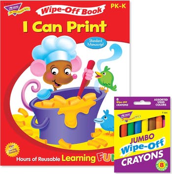 - Reusable dry-erase book and pack of dry-erase crayons in 8 colors gives hours of playful learning, encouraging the repetition young minds need to master basic skills.