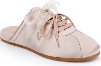 Comfort meets elegance on your next occasion with this lace-up mule fashioned from smooth satin.