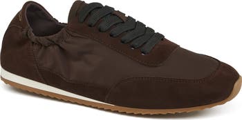 The PRISHA combines understated elegance with everyday comfort. This low-profile lace-up sneaker features a premium suede and nylon construction that balances durability with refined aesthetics. The almond toe silhouette offers a flattering, modern fit, while the integrated memory foam insole provides responsive cushioning for all-day wear. Whether navigating city streets or casual outings, the PRISHA delivers sophisticated style without compromising on wearability.