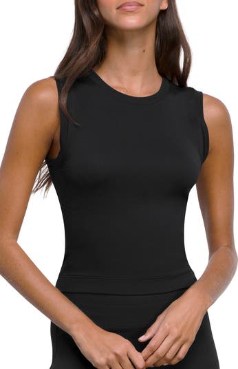 A seamless design ensures ventilation from front to back in this fitted tank designed with airy mesh and a sporty look.