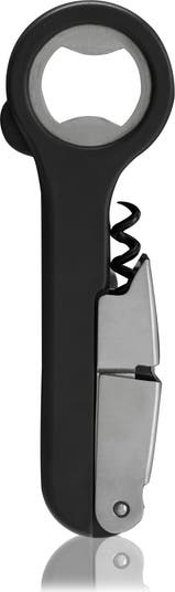 This compact yet powerful Professional Corkscrew is designed for both sommeliers and wine enthusiasts. Its double-hinged design provides two points of leverage for seamless uncorking, and the 5-turn, non-stick coated worm easily pulls both natural and synthetic corks. The corkscrew also includes a built-in 3-blade foil cutter and a bottle opener for added versatility. The magnetized body ensures convenient storage and access. Sleek, durable, and compact, this corkscrew is a must-have addition to any bar or kitchen.