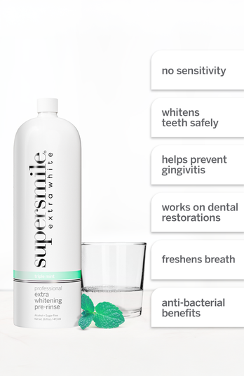 1 swish, extra power. extra whitening pre-rinse delivers the highest concentration of whitening ingredients for maximum results. The supercharged formula also reduces bacteria, freshens breath, and keeps gums healthy. The rinse prevents and inhibits plaque that can lead to gingivitis and more serious health conditions. This formula features the highest concentration of whitening ingredients to safely and effectively prime teeth for maximum whitening results. With anti-bacterial benefits for a healthier mouth and fresher breath.