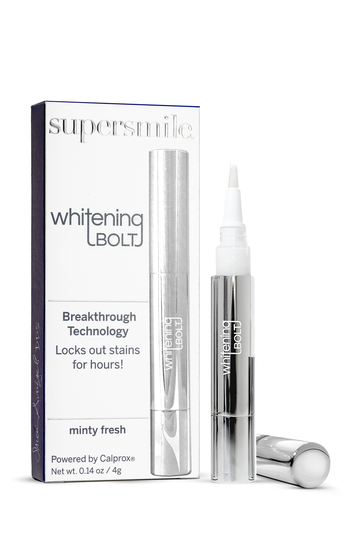 Meet your new favorite tooth-stain fighter. This on-the-go whitening innovation helps stop teeth stains before they start. Apply the whitening BOLT and enjoy coffee, tea, wine, fruit juices or berries and lock out stains for up to 6 hours. It’s the best way to maintain your white smile while still enjoying all your favorite things. The Calprox®-infused formula also whitens and helps improve shine.