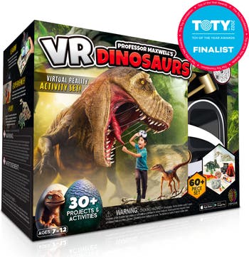 Includes: This 60-piece activity set includes a variety of activities, from a 3D stegosaurus puzzle and a dino dig out, to an erupting volcano and blow pen art, this kit includes everything you need to dive in, including VR goggles.