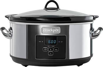 With its blend of style and superior performance, the Crock-Pot Black Stainless Programmable Slow Cooker is the perfect choice for your kitchen—no matter your decor. Its innovative finish is warmer and softer than traditional stainless steel, and it requires minimal maintenance to retain a lustrous appearance. Simply wipe with a dry cloth to remove any smudges in seconds. This slow cooker also features an 8-quart capacity capable of feeding over 10 people, a digital timer that counts down cook times of up to 20 hours, and an automatic warming function that kicks in when your countdown is done. When your meal is done, cleanup is a snap thanks to the removable, dishwasher-safe lid and stoneware pot. Need ideas for dishes to make?