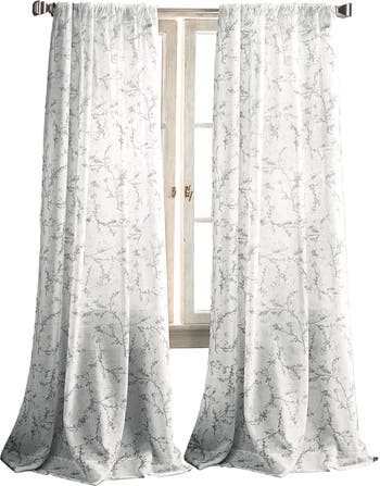 Light illuminates the dainty blossoms patterning these sheer curtain panels that hang easily to quickly put a fresh update on your decor.