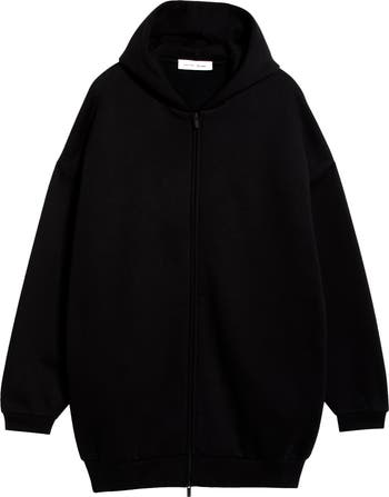 Satin appliqués brand the back of this essential hoodie cut from double-layer heavyweight fleece at an extralong length.