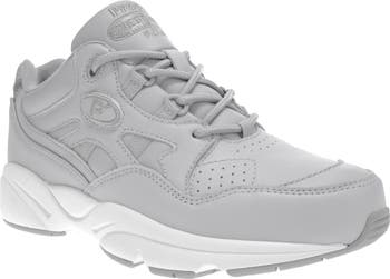 With a rocker profile, this D-ring lace-up shoe offers a smooth walking stride. Leather upper with brushed nylon lining. Padded collar and tongue, internal and external heel counter, plus removable Poliyou® orthotic with leather heel seat. Lightweight molded EVA midsole for shock absorption. By Propét; imported.