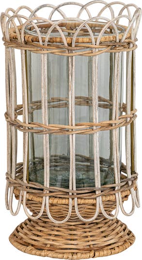 Warmly accent your favorite cozy nook or showcase a lush plant or candle with this hurricane handwoven from natural rattan that complements your home's relaxed aesthetic with a rustic French vibe.
