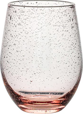 Bring artisanal beauty to your next dinner party with this mouth-blown stemless wine glass inspired by the traditionally bubbly drinkware found in Provence.