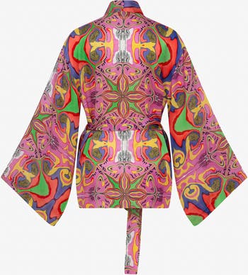 Psychedelic Printed Blushwave Short Kimono