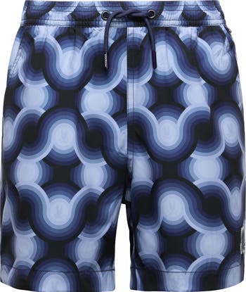 An illusion-creating print keeps them feeling confident as they make their way through the water in these stretchy swim trunks.