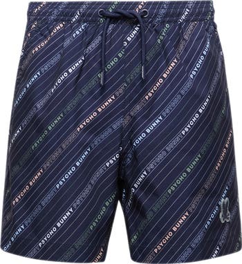 A striped logo print keeps them feeling confident as they make their way through the water in these stretchy swim trunks.