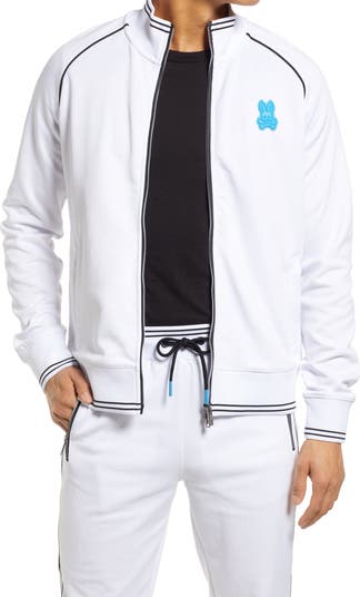 Contrast stripes and a signature logo stand out on this sleek track jacket styled for easy comfort with a zip front and lightweight knit.