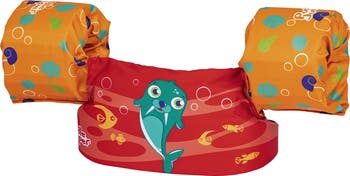 Have a summer full of splash-filled smiles with the Puddle Jumper Child Deluxe Life Vest with Armbands! Help your child, 33-55 lbs (15-25 kg), build water confidence in this bright life vest, featuring fun, imaginative walrus graphics. Reviewed & Tested: The Puddle Jumper Child Deluxe Life Vest with Armbands is U.S. Coast Guard and Transport Canada tested and approved for use as a Performance Level 70 personal flotation device in, on or near the water. The vest also includes a kid-friendly polyester fabric and built-in foam pads, which are tested for buoyancy and comfort. Secure Fit: The swim vest includes buckles that snap in the back where they can't reach, and an adjustable strap to create a snug fit while keeping kids secure as they splash and play the day away. Whether it's their first introduction to the water or they're paddling pros, the Puddle Jumper Child Deluxe Life Vest with Armbands will keep them comfortable all summer long.