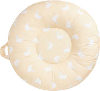 Your little one will love lounging on this patented cushion with a distinctive donut design that helps to keep baby supported and comfy at every stage. With raised edges and a soft padded center, this cushion supports baby's head and neck while providing a cuddly space for supervised playtime while promoting muscle development. Dual handles offer easy portability, and durable, machine-washable construction means it can be used indoors or outdoors and for excursions.
