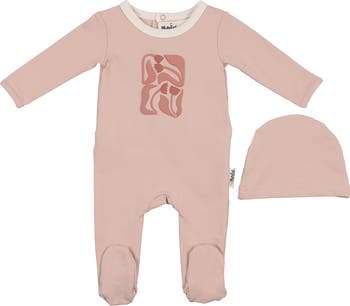 Puff paint graphics add a playful pop of texture to this cotton-rich footie paired with a matching hat.