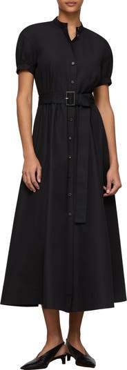 Puff Sleeve Belted Cotton Poplin Shirt Dress