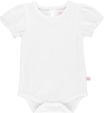 Puff sleeves playfully frame a cozy-cute bodysuit cut from soft stretch cotton and finished with easy-on snaps.
