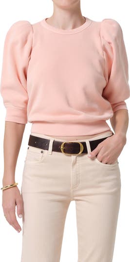 Structured puff sleeves bring statement volume to this cotton-blend top finished with ribbing at the cuffs and hem that lightly cinches the silhouette.