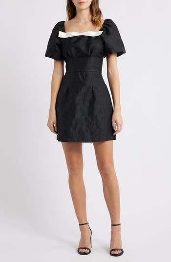 Puff Sleeve Jacquard Cocktail Minidress