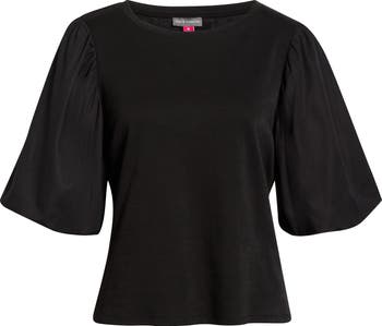 Voluminous poplin sleeves sweeten the silhouette of this cotton-blend knit top made with a classic crewneck.