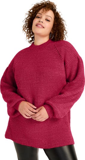 Meet the perfect sweater of the season: designed with a comfy relaxed silhouette and mock neckline that hits at just the right spot, it has large puffed sleeves for a dramatic effect. It's infused with a touch of wool for warmth.