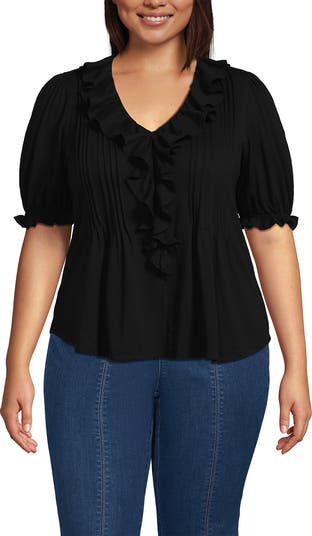 This elbow sleeve top is all about soft femininity from the smocked puff sleeves to the ruffle-trimmed V-neckline. Pintuck accents along the front add subtle texture, while the straight fit skims the body without clinging. Crafted in a textured and soft all-cotton slub jersey, it feels as lovely as it looks. A charming, easy-to-wear style that pairs beautifully with everything in your wardrobe.