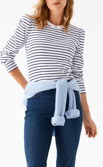 Gathered shoulders subtly puff the bracelet-length sleeves of this T-shirt cut from a soft, smooth stretch-enhanced cotton knit.