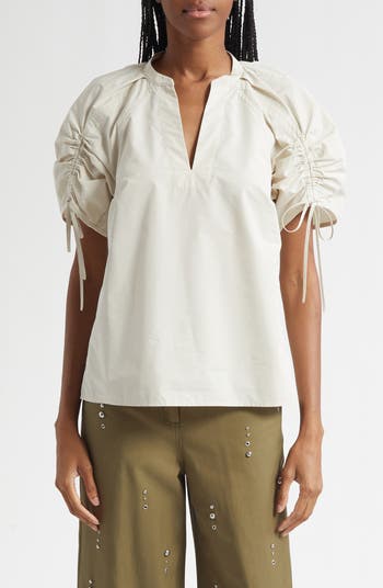 Adjustable ties allow you to customize the puff level of the short sleeves that frame this woven top made from a breathable cotton blend.