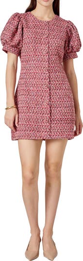 Puff sleeves put a playful twist on a textured tweed minidress that's an elevated style standby.