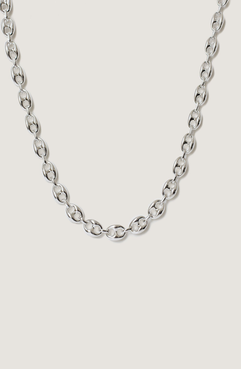 The Puffed Mariner Chain is a classic style that has stood the test of time. Create a bold stack by mixing this sterling silver necklace with a yellow gold herringbone chain.