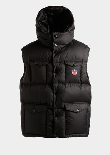 This hooded puffer vest with horizontal quilting is crafted with precision in water-repellent ripstop nylon. The front is completed by four patch pockets closed by snaps and a Bally Crest patch on the chest.