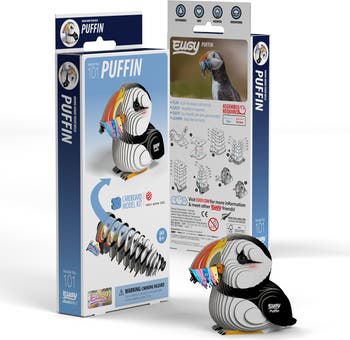 EUGY Puzzles are environmentally friendly cardboard 3D puzzles that take 10-20 minutes to assemble.