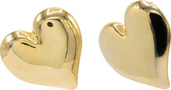 Be a heartbreaker of style in Adina Eden's Puffy Chunky Heart Stud Earring, featuring an XL puffed heart charm set into a delicate stud. Turn heads instantly in this gem. It's feisty, fashionable and flirty all in one. Stack it up with a couple of accent huggies and studs for the full, heart-throbbing effect.